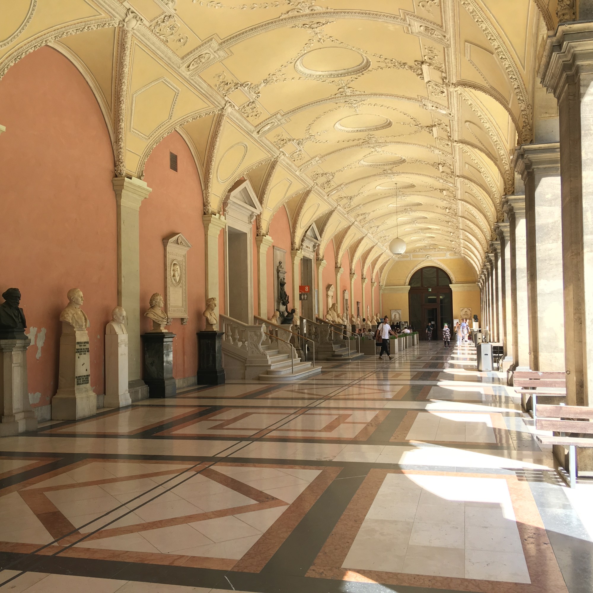 The classy atmosphere at the University of Vienna made me feel like I had to behave with more discipline, and the impression it left on me resembled the wide-spread effect that Austria would have wanted its revamped art initiative to have on its citizens. Roaming the silent empty halls, there were tall wide arches, untainted white walls, and shiny reddish-brown tile floor surface. It really reminded me of the typical high school one would see in movies, but there was no trash or rowdy behavior from young, immature students. The beautiful architecture, accompanied with the superb upkeep disseminated that elegant, classy atmosphere, and while I walked through the halls and exploring the different rooms, I experienced a feeling of care for my surroundings because I did not want to disrupt the peace. There was a particularly memorable moment when walking through a computer lab where one girl was passing by as well and she banged her leg on the corner of the table and almost fell. All thirty people in the room turned around to glare at whoever interrupted the prior tranquility. Another way the University of Vienna crafts a classy atmosphere is by surrounding the grass atrium with a lot of busts of dignified alumni, notably Sigmund Freud. Apart from commemorating such famous products of the university, the placement of the statues could be utilized to inspire current students to realize that they can do great things and make a name for themselves, just like they did. In effect, the pedigree of the university as an institution would rise which would allow it to attract the best students from all over the world.